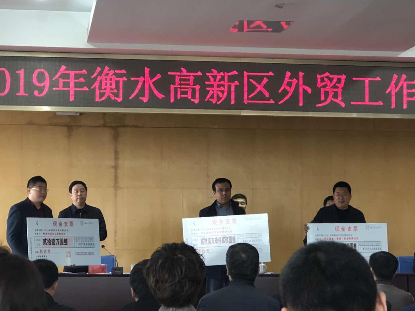 3月27日,宋英健副總經理代表我公司參加了衡水市高新區外貿工作會議,會議總結了2018年高新區企業外貿出口工作的經驗和成績,對在2018年出口工作中作出卓越貢獻的包括我公司在內的3家外貿出口企業予以獎勵,宋總在會議上做了典型發言。