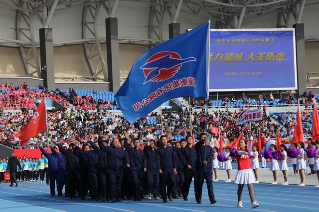 10月26日上午,以“活力湖城,大美衡水”為主題的衡水市第四屆運(yùn)動(dòng)會(huì)在市奧體中心體育場(chǎng)開幕,這次運(yùn)動(dòng)會(huì)是全市規(guī)模最大、水平最高、影響最廣的綜合體育賽事。市長吳曉華致辭并宣布開幕。省體育局巡視員張綽庵致辭。市領(lǐng)導(dǎo)王金剛、李洪林、鈕興輝、韓志剛、劉永軍、李建剛、崔建發(fā)、程蔚青、趙維東、馬衛(wèi)、韓克儉、蘇振武、姚會(huì)亭出席開幕式。副市長崔海霞主持開幕式。來自各縣市區(qū)、市直各部門、中省直駐衡單位、企事業(yè)單位 、各大中專院校、社會(huì)團(tuán)體的70支代表隊(duì)和11個(gè)團(tuán)體操展演單位,以及由各縣市區(qū)提供的13輛花車參加了開幕式。冀衡集團(tuán)43名職工組成的代表隊(duì)參加了開幕式。