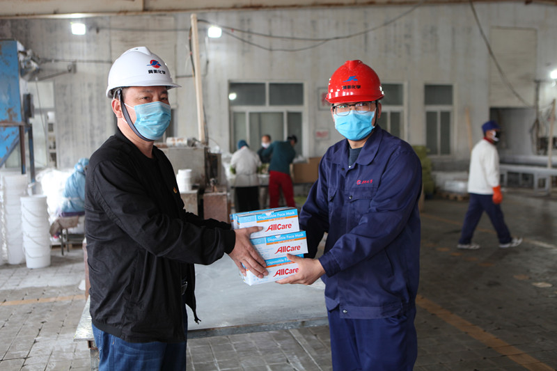 3月31日,集團工會韓紅喜主席到我公司,深入到消毒劑車間和氰尿酸車間生產崗位,為一線職工發放了口罩。