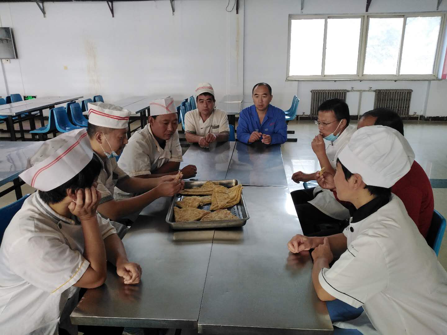 9月24日下午,由化學公司承辦集團“廚師技術交流會”,這次交流的主題是主食的制作,來自集團四個分子公司職工食堂的廚師圍坐一起,互相交流工作中的心得體會,交流會上各位廚師現場操作,每人烙餅一張,并把自己的勞動成果端到飯桌上,借助大家品嘗、評價,互相取長補短,交流會上各位廚師表示,集團組織的這種形式非常好,希望以后繼續開展下去,不斷提高自己的工作技能,不斷提高飯菜質量,更好地為職工服務。